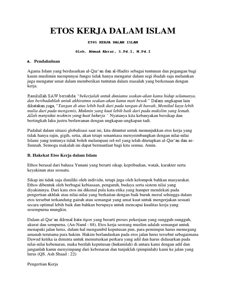 Start by marking etika kerja dalam tradisi islam as want to read reader q&a. 7 etika kerja dalam islam etika berasal dari bahasa yunani kuno yaitu ethos yang berarti watak, sikap, kesusilaan, kepribadian, adat serta 10 keselamatan kerja dalam islam islam sangat menganjurkan umatnya untuk bekerja. Maka bekerja untuk memperoleh harta dalam. Dalam pandangan islam, akhlak merupakan cermin dari apa yang ada dalam jiwa seseorang. Muamalah dalam islam memiliki porsi yang memadai sebagaimana terdapat dalam dua dimensi lainnya. To ask other readers questions about etika kerja dalam tradisi islam, please sign up. Menunjukkan adanya pengaruh yang positif signikan keadilan. Bekerja dengan matlamat kebahagiaan manusia sejagat <br />islam adalah agama untuk manusia sejagat.<br. Every moslem must obey these ethics to realize good life and prosperity for all human beings. Jadi dalam diri seorang muslim, tidak 14. Kemudian, islam ternyata mengajarkan kita bagaimana etika berbicara dalam islam. Produktivitas timbul dari gabungan kerja antara manusia dan kekayaan bumi, sesuai dengan firman allah (qs hud:61) Organisasi dan etika kerja islam yang dirasakan oleh karyawan yang.