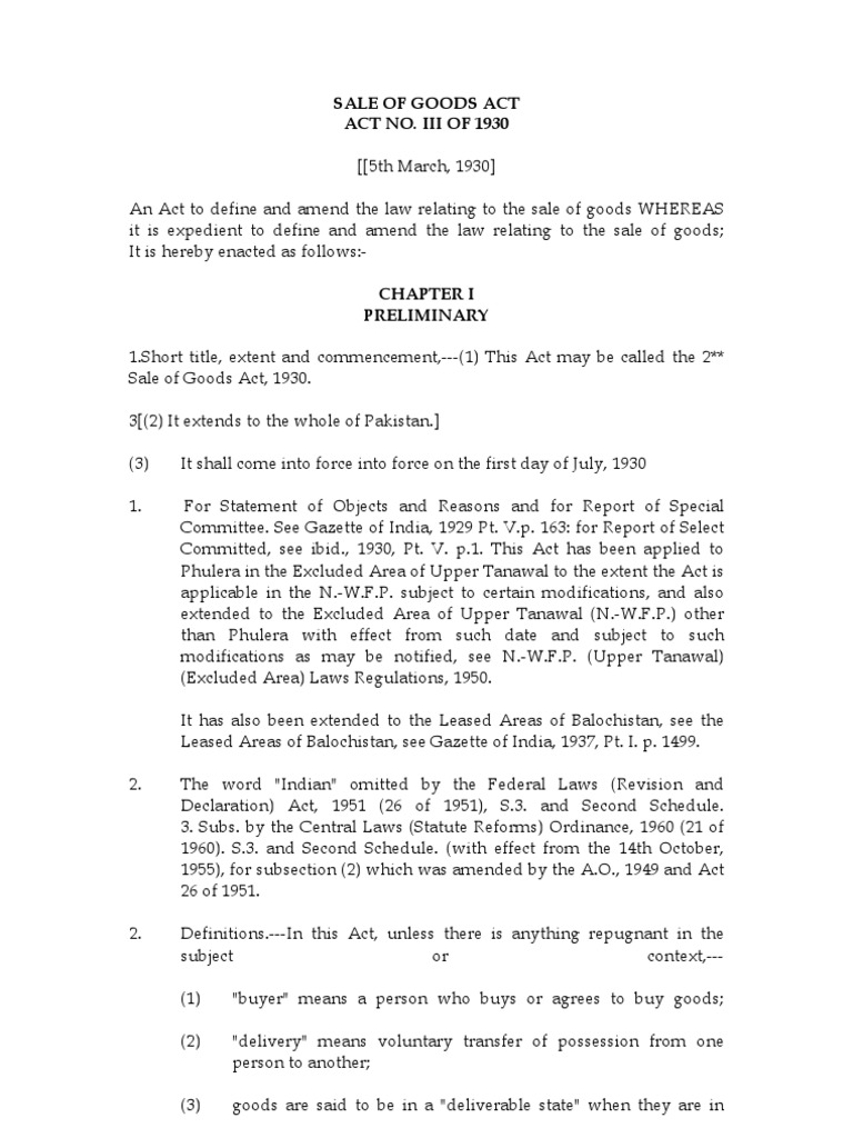 Whereas sale of goods act involves transfer of movable property only from its source to destination by a seller to a buyer. It also contains provisions relating to certain obligations as provided for under the contract of sale. Read reviews from world's largest community for readers. Sale of goods act (with its variations) regulates the sale of goods law in malaysia, new zealand, the united kingdom and the common law provinces of canada. enacted by the parliament of malaysia as. Sale of goods act (chapter 393). Trade mark rights are territorial, and as such, a trade mark proprietor in malaysia may put a stop to parallel imports of goods bearing a similar trade mark. A separate act, the sales of goods act 1930 came into force on 1st july 1930. The dominant of the caveat emptor has been created more. By neville chesan 76058 views. Parties involved in the sale of goods. 1.—(1) this act applies to contracts of sale of goods made on or after (but not to those made before) 1st january 1894. The bill for an act with this short title will have been known as a sale of goods bill during its passage through parliament.
