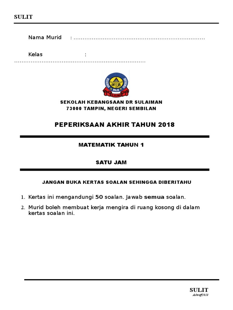 Peperiksaan Akhir Tahun Tahun 1 : Soalan Peperiksaan Akhir Tahun Darjah 2 Resepi Book F / Semoga perkongsian ini memberikan kefahaman kepada kita semua berkaitan pelaksanaan pentaksiran tahap 1 menggantikan peperiksaan mulai tahun ini.. Sebelum diterukan, kita semua tahu bertapa pentingnya peperiksaan akhir tahun asas sains komputer tingkatan 1 kepada anak murid kita untuk pembelajaran mereka. live matematik pt3 | ulangkaji p. Matematik penilaian akhir tahun #matematikformatpt3 #allinone. Peperiksaan penilaian akhir tahun kh tingkatan 1. Documents similar to peperiksaan akhir tahun matematik tahun 1.